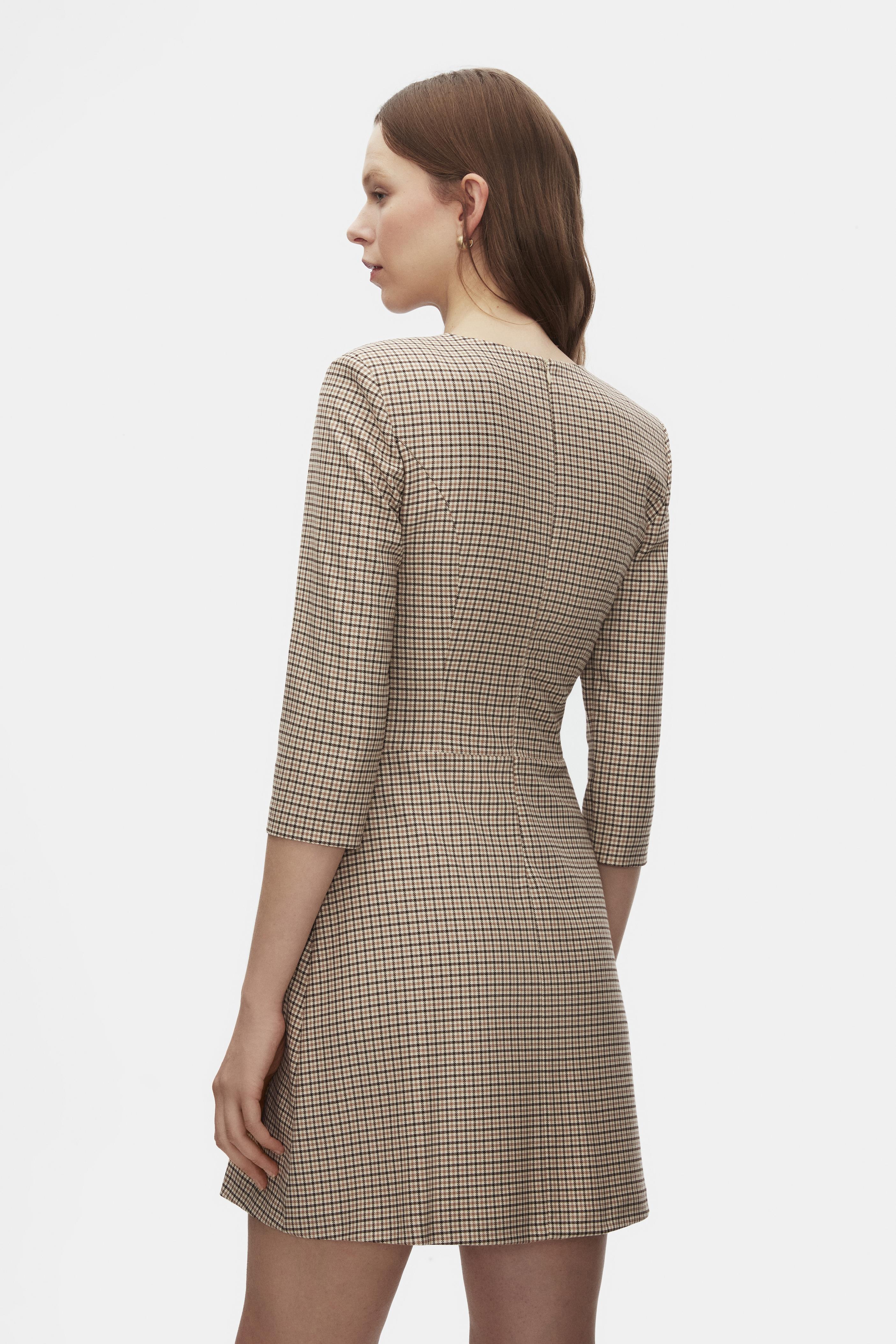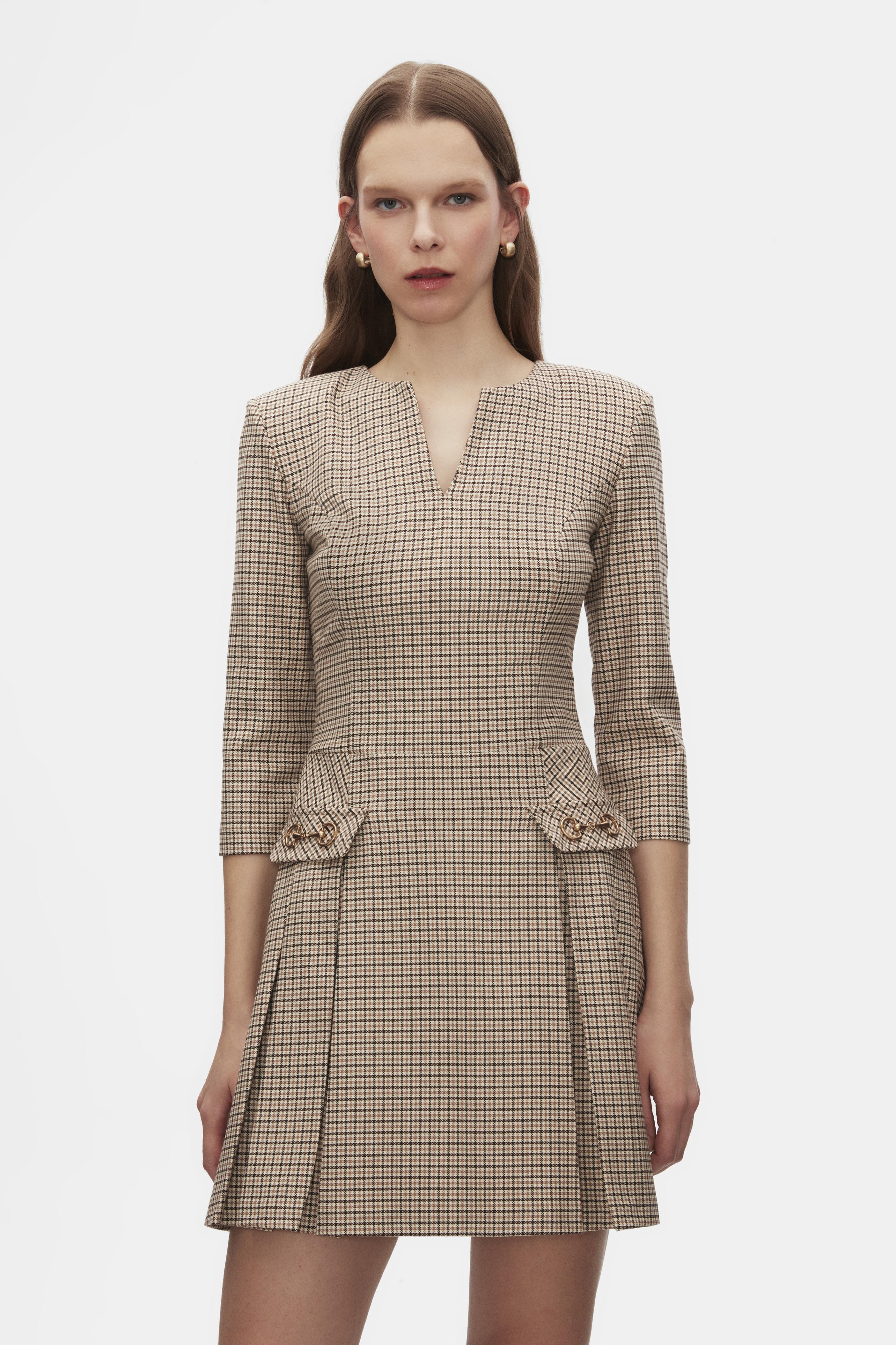 Ekoseli Pileli Mini Elbise (6501-001-25Y)