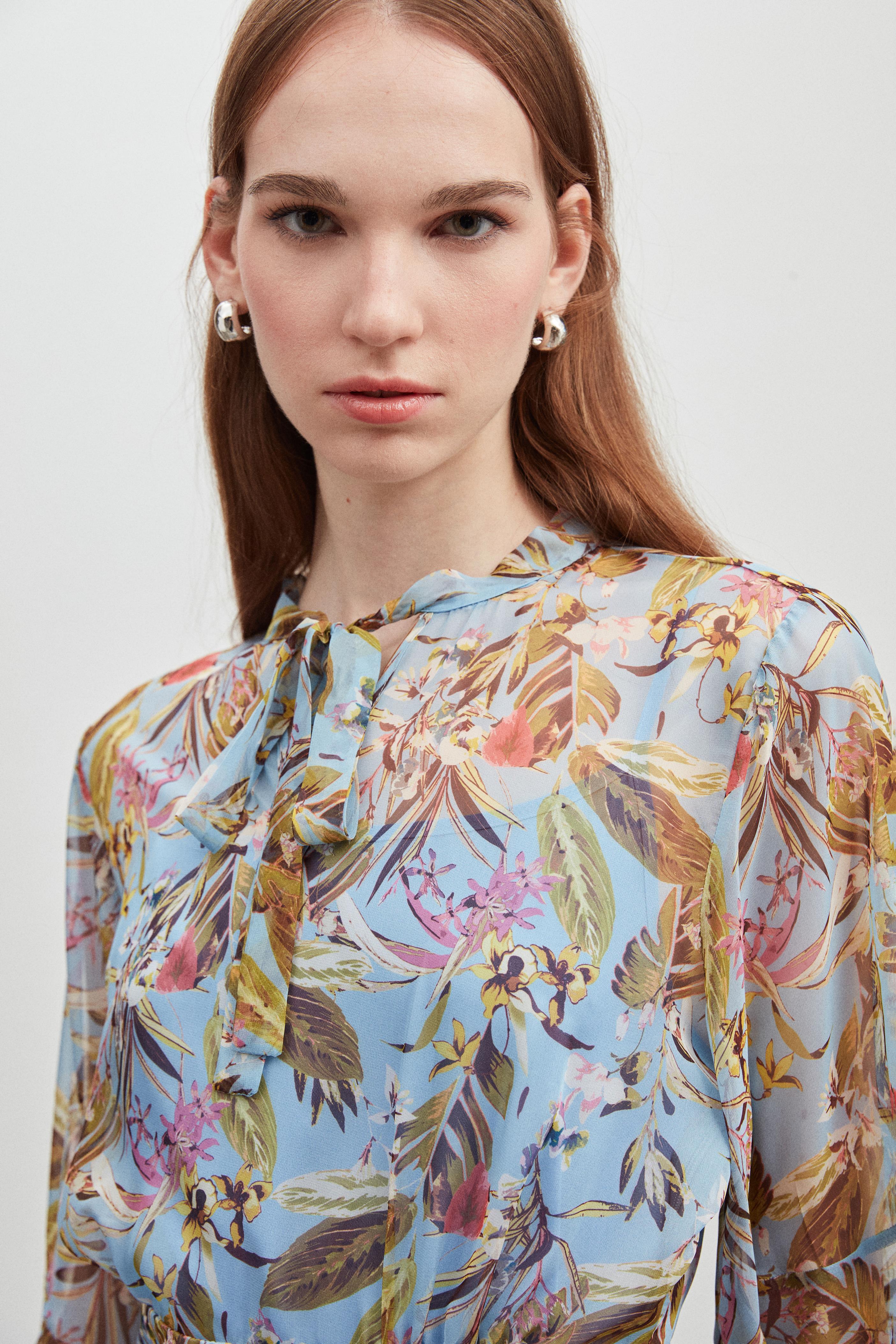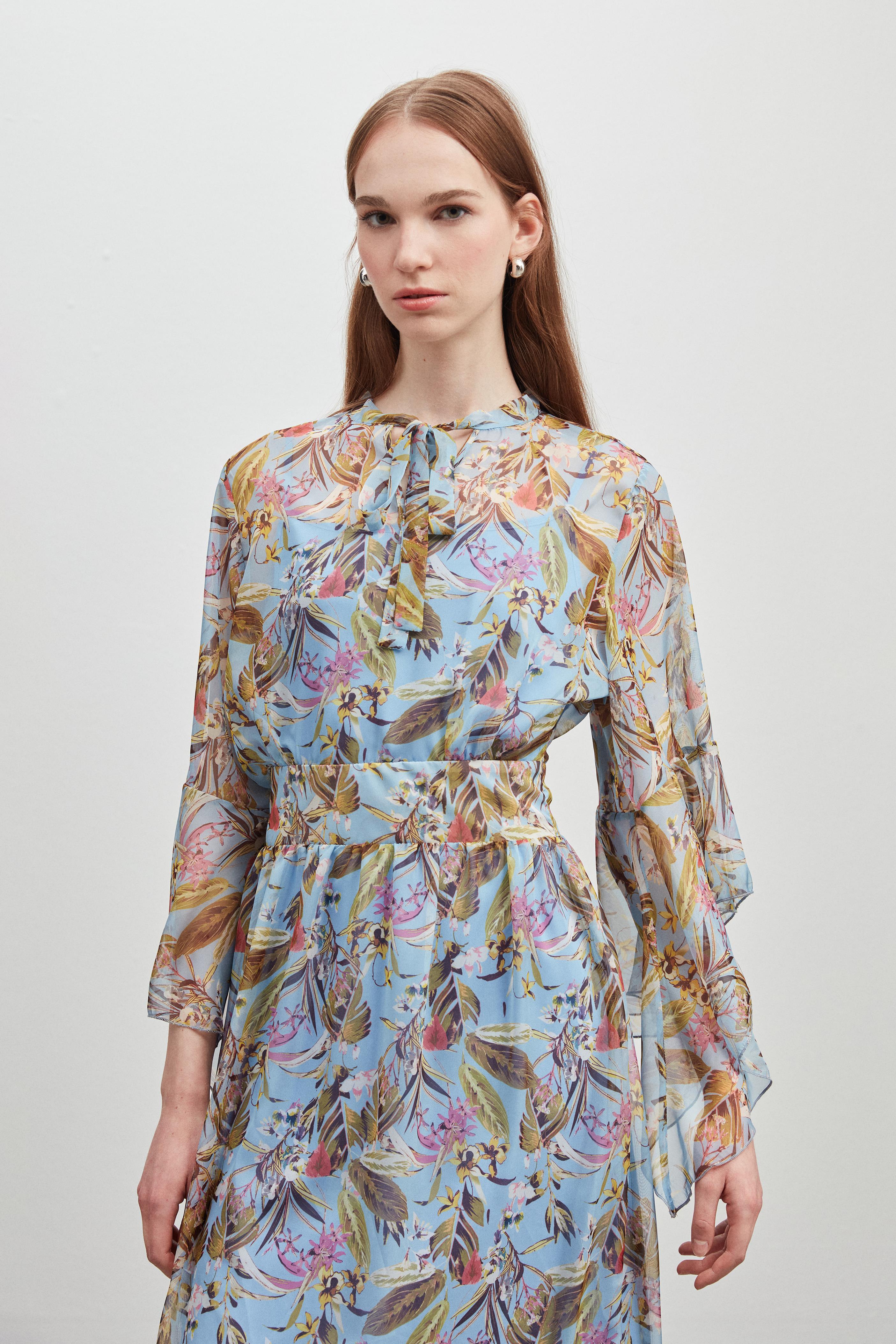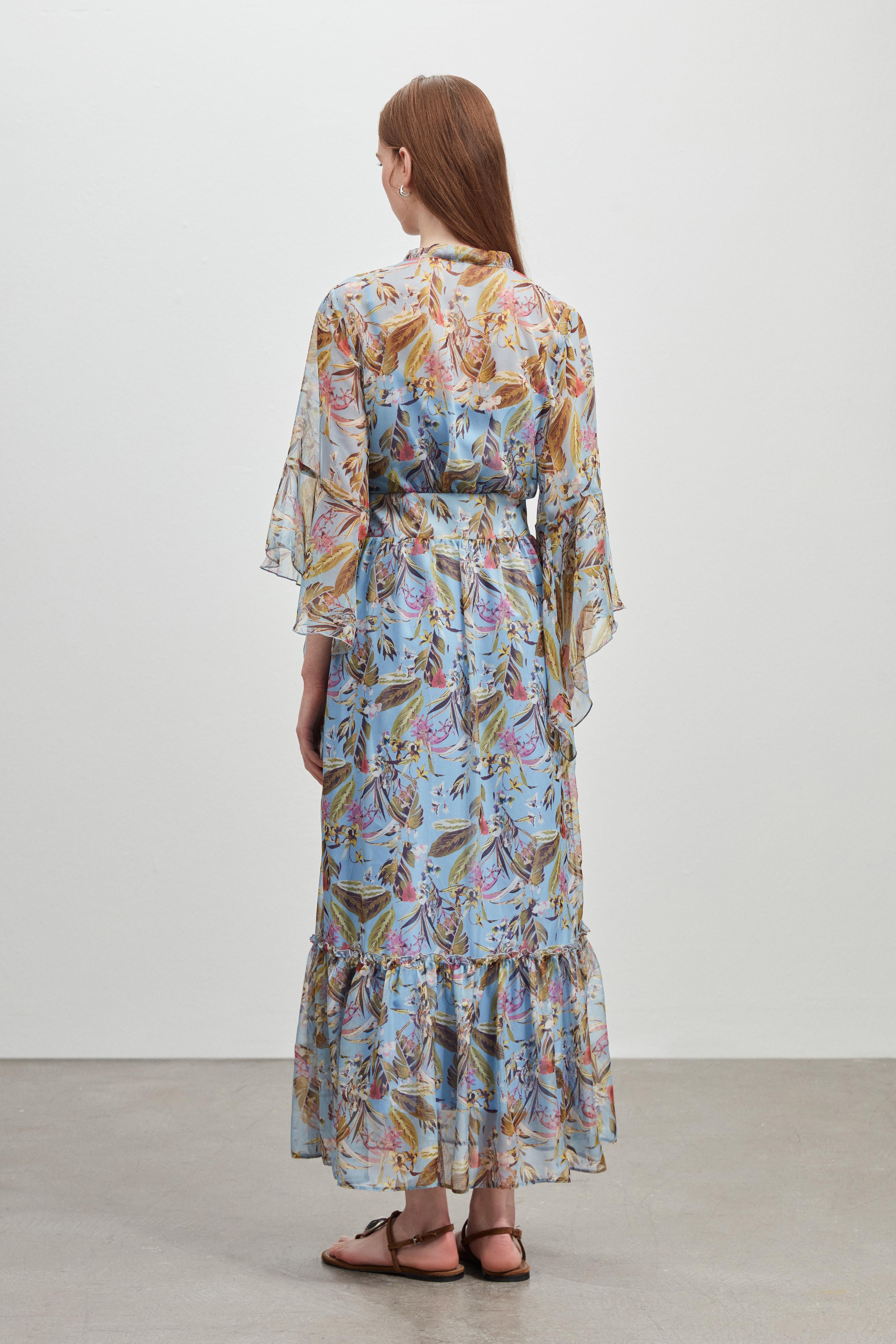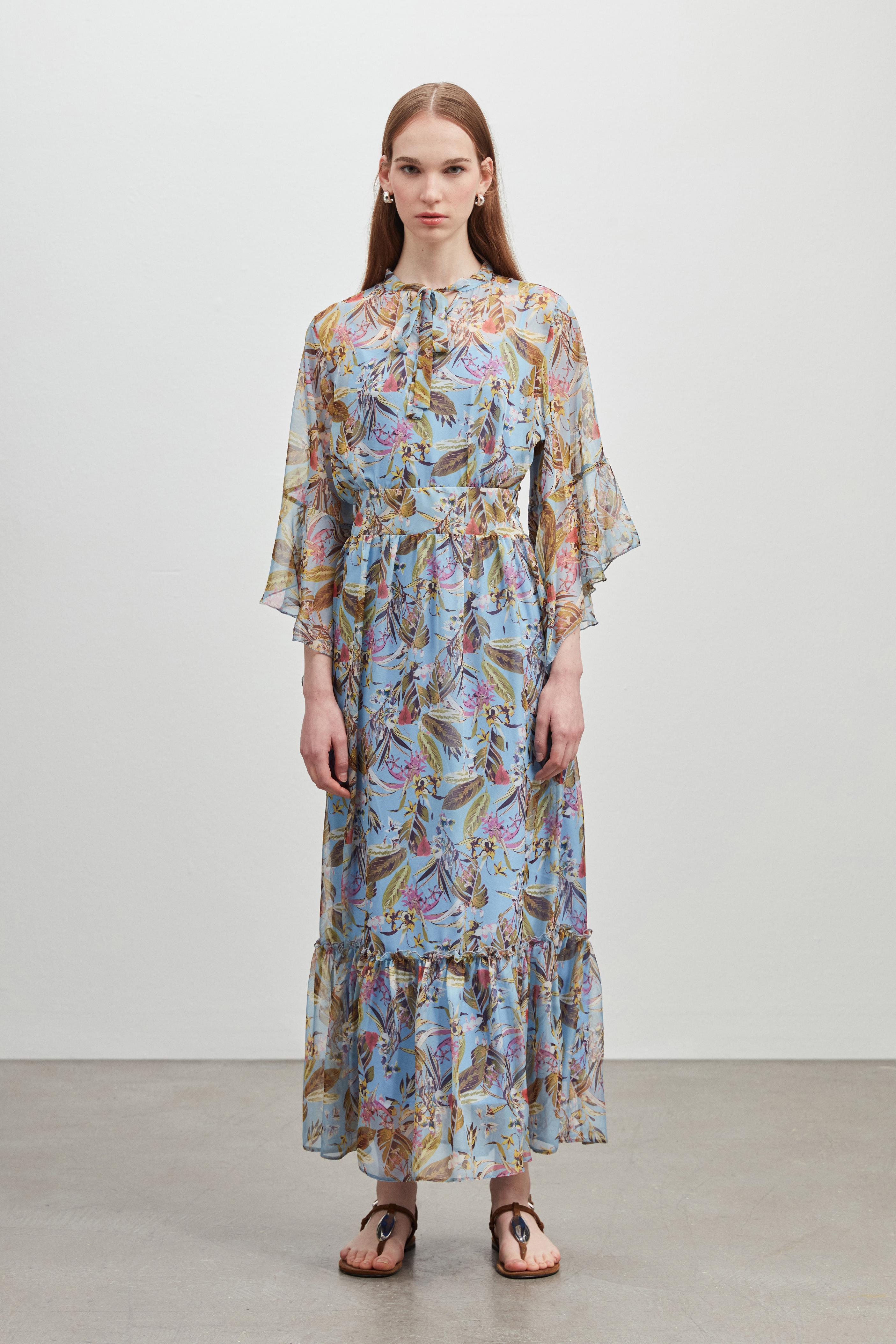 KOL DETAYLI DESENLİ ŞİFON ELBİSE (6532-095-25Y)