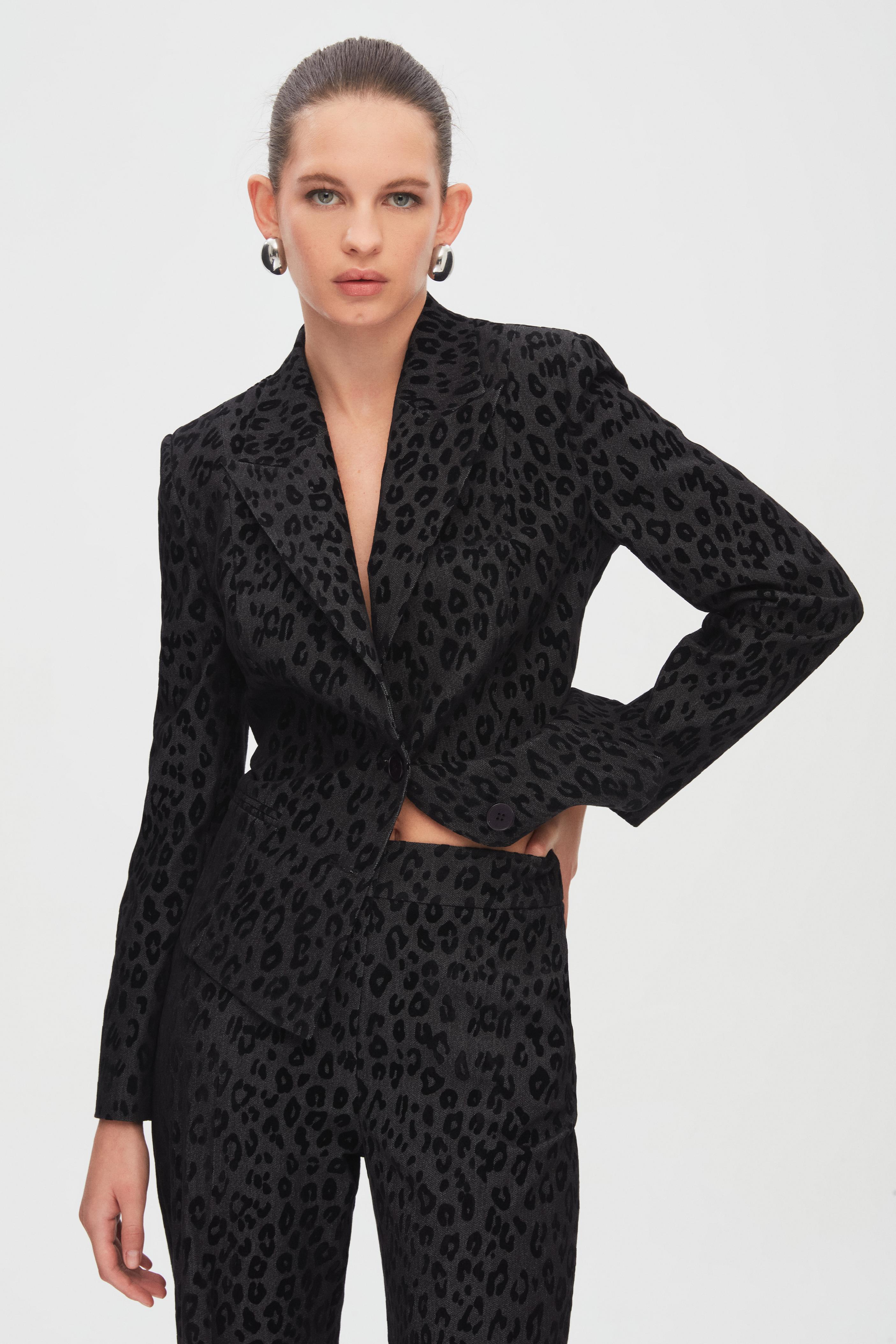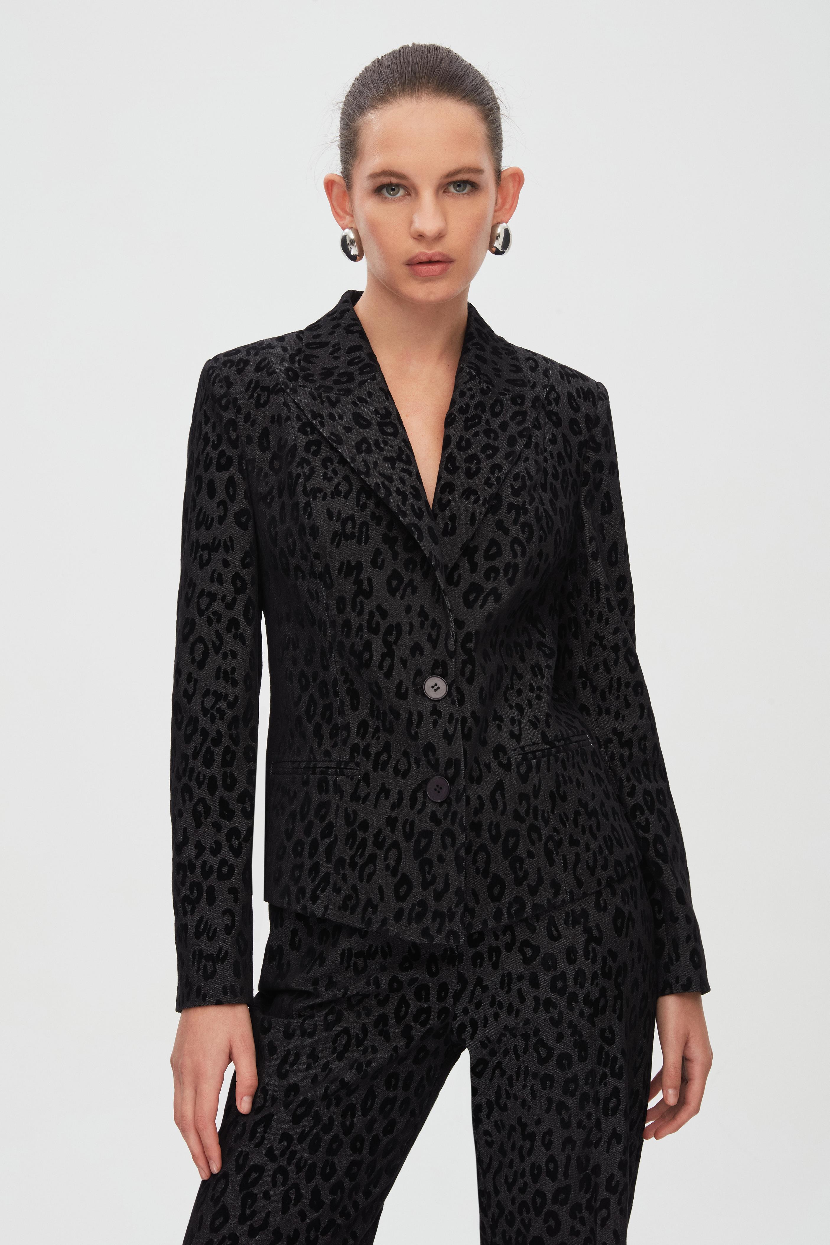 Siyah Leopar Desenli Ceket Pantolon Takım Elbise (2902-614YL)