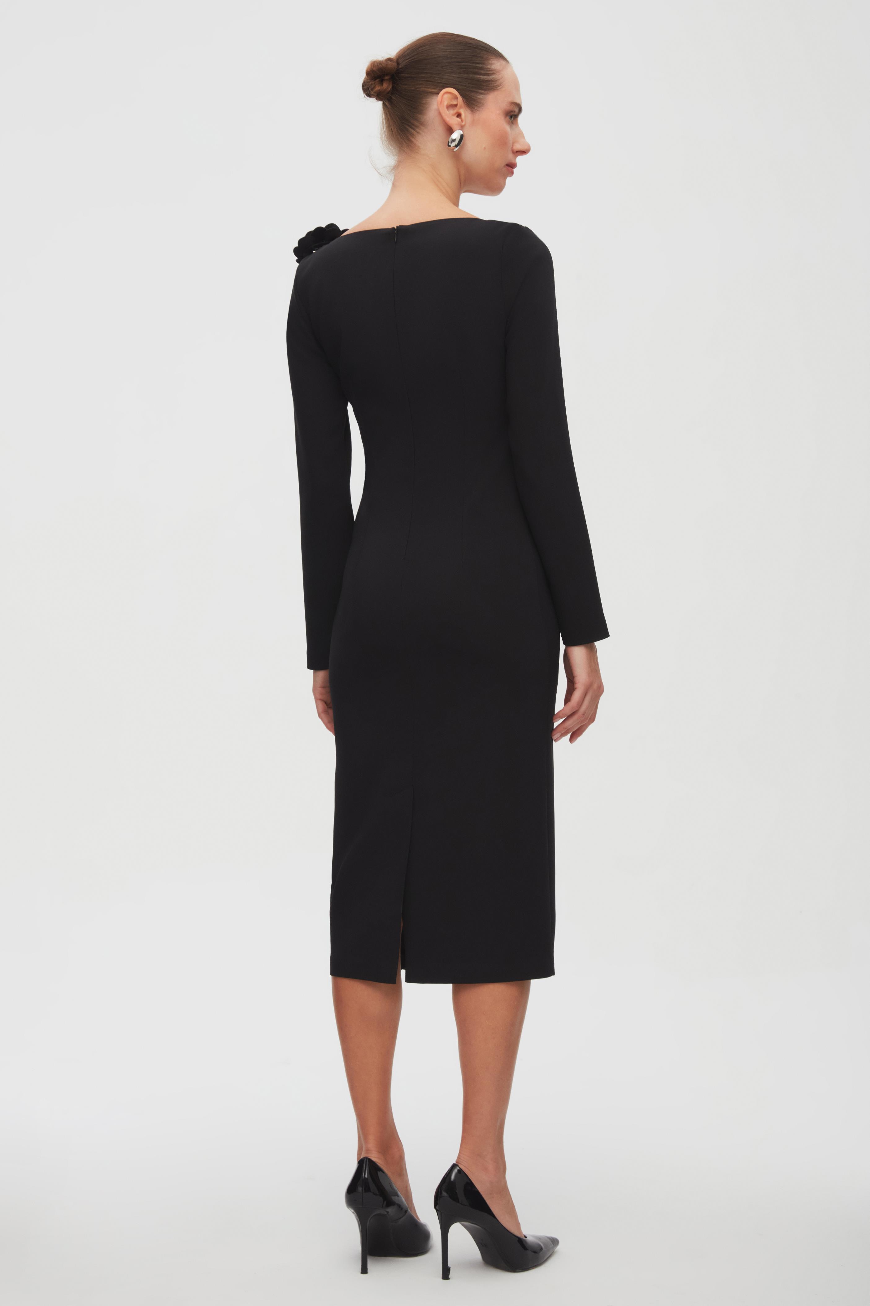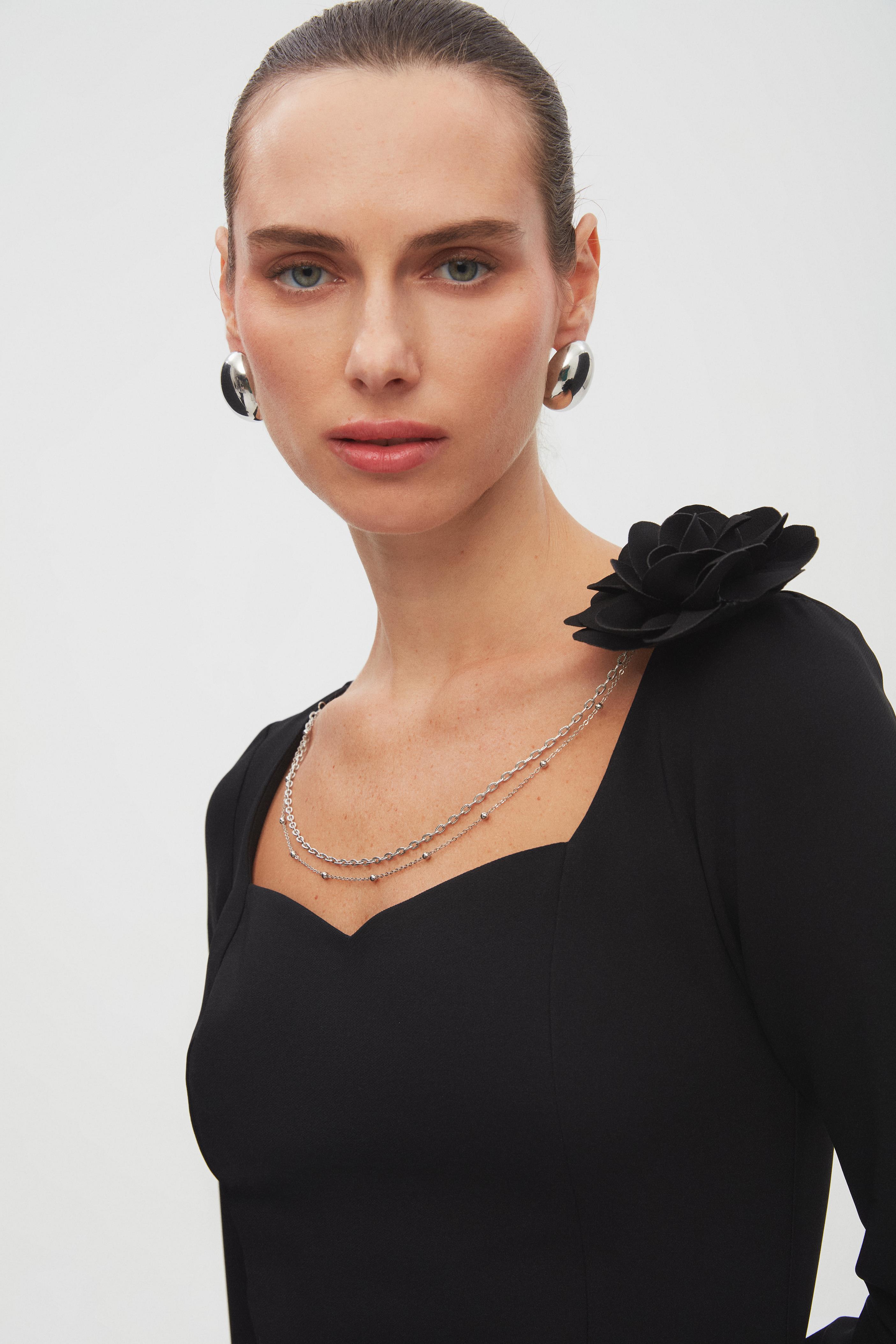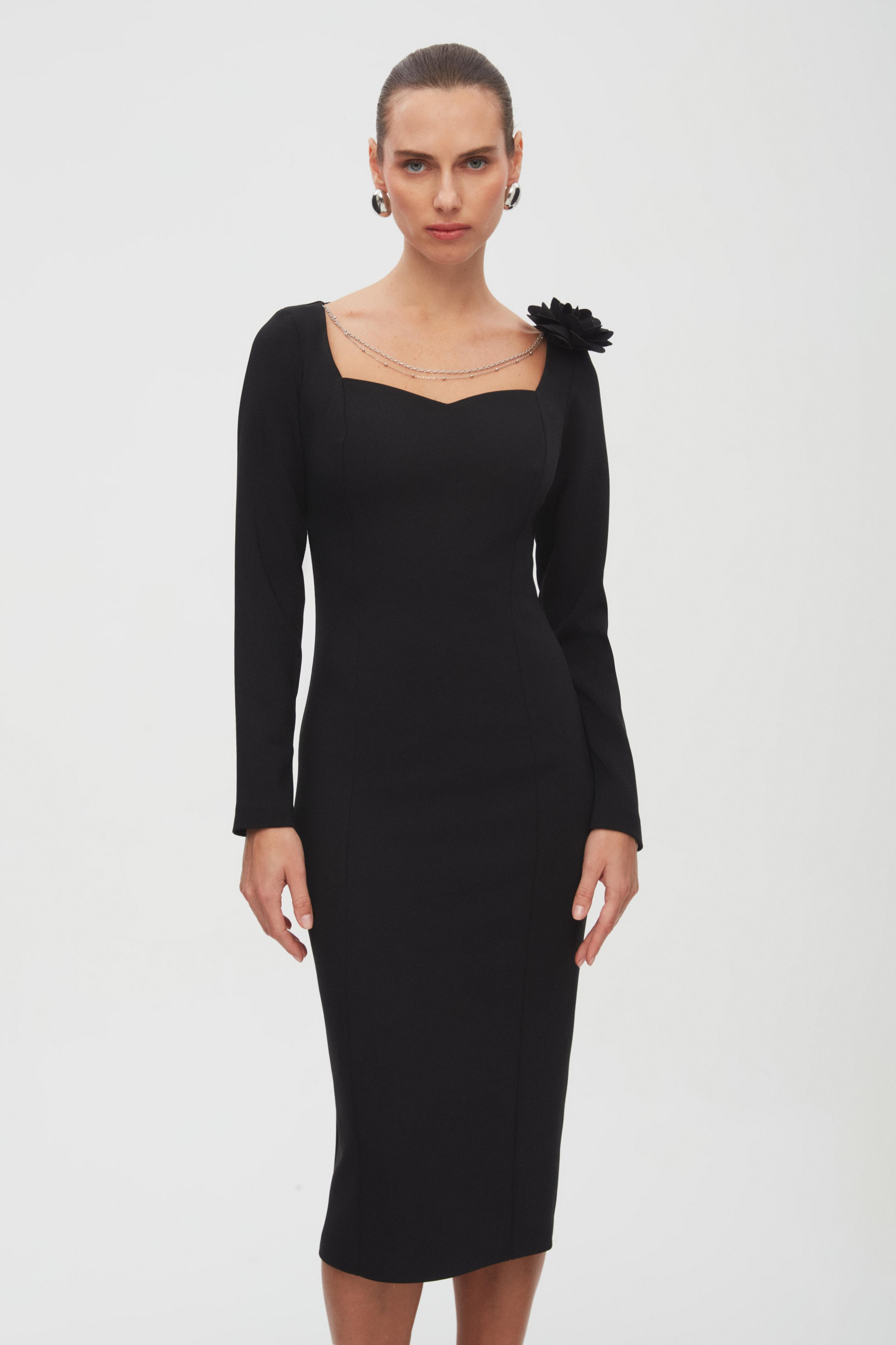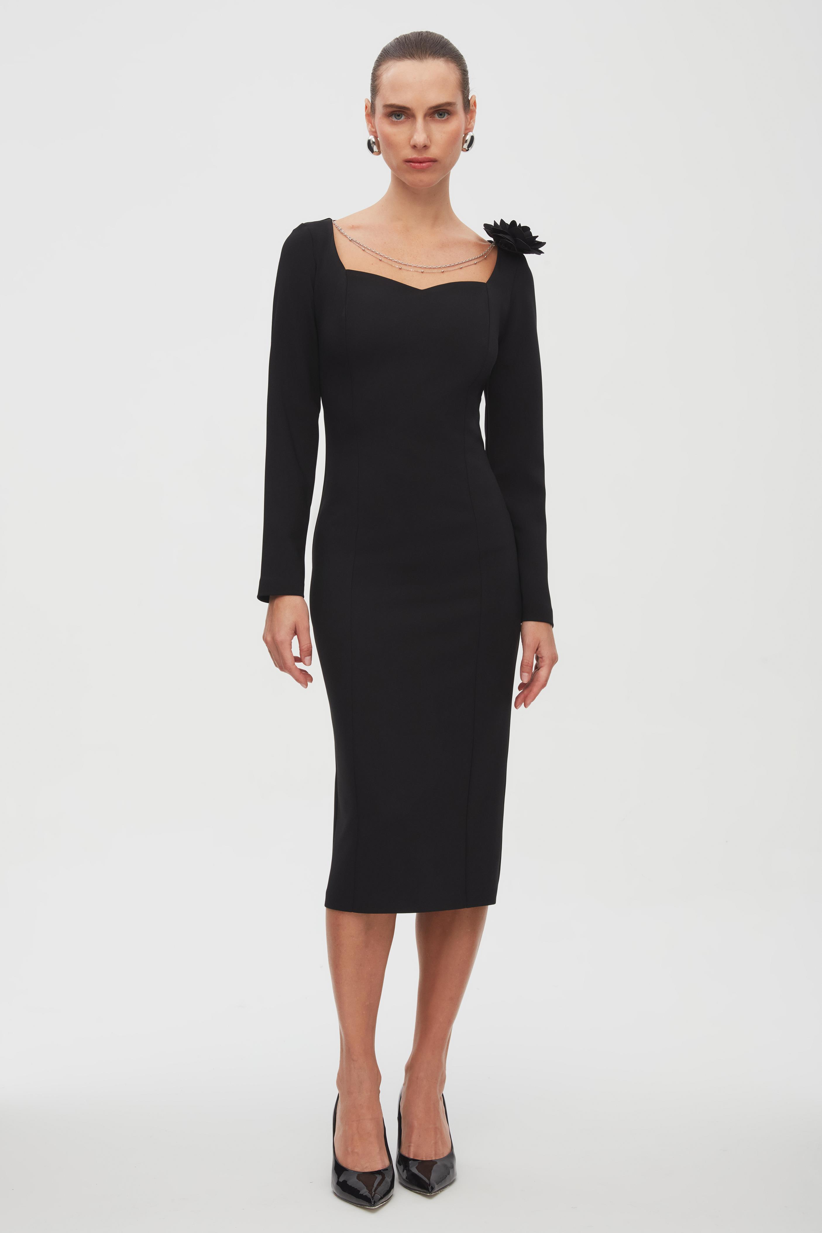 Zincir Detaylı Kalp Yaka Midi Elbise (6490-951-24K)